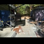 Turn Key Trailer with a deck, pergola, shed, and chairs.